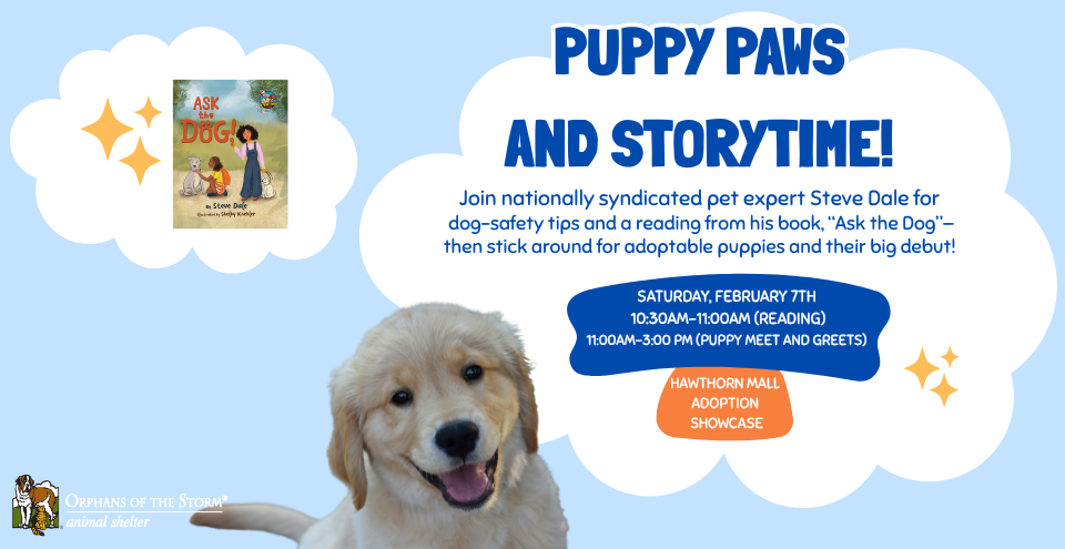 Celebrate the joy of puppies and the importance of safe, compassionate interactions with animals at Puppy Paws & Storytime Day, a special learning and adoption event featuring adorable puppies waiting for a family to call their own!